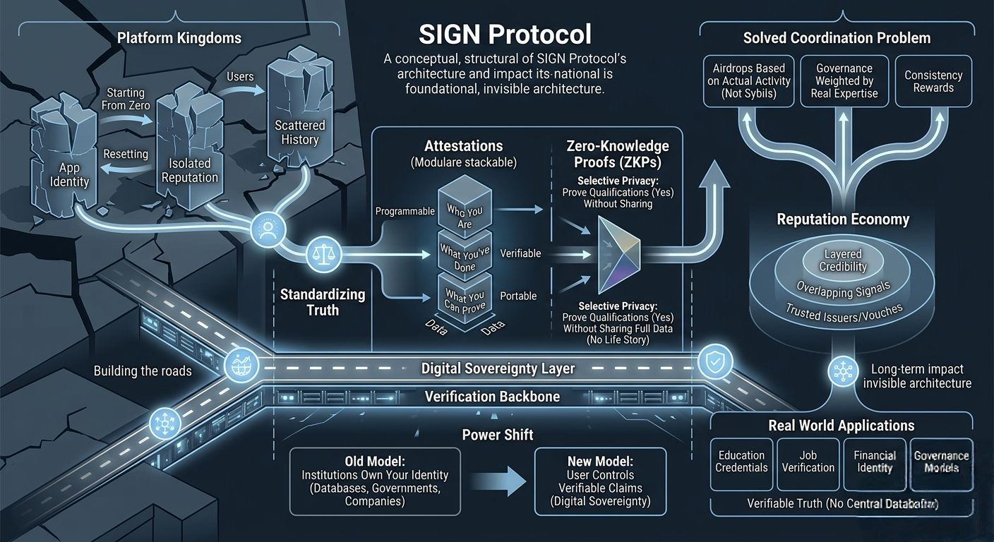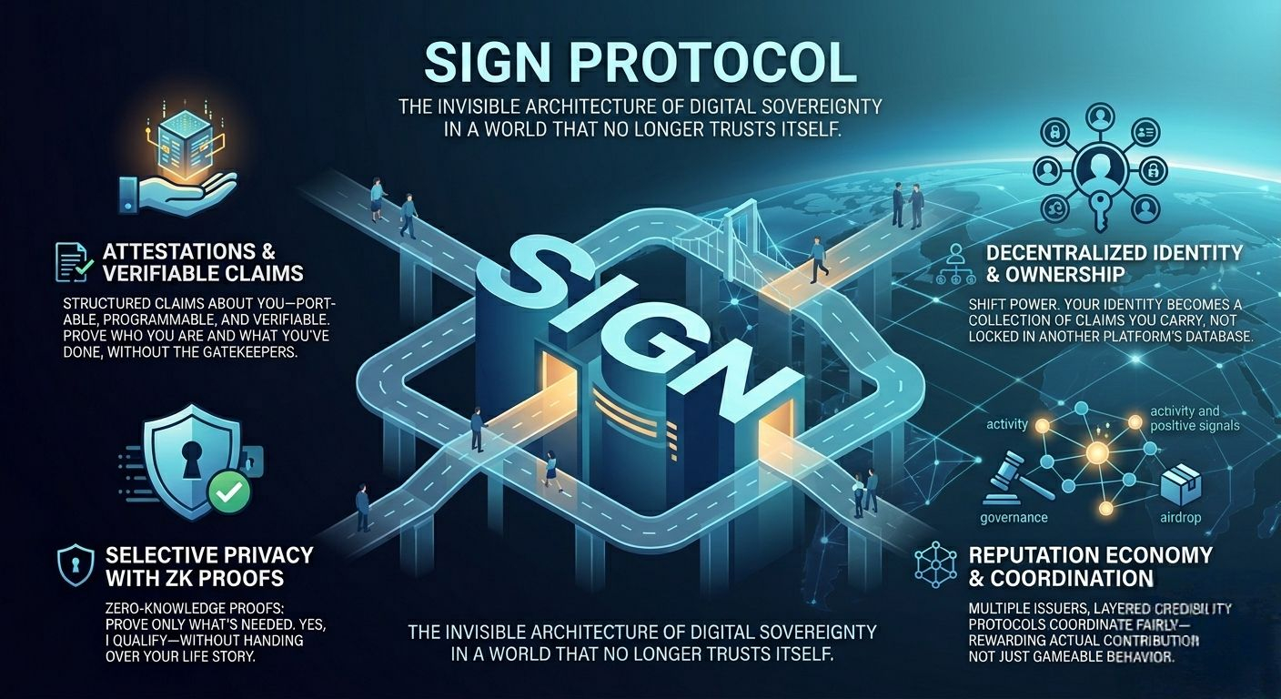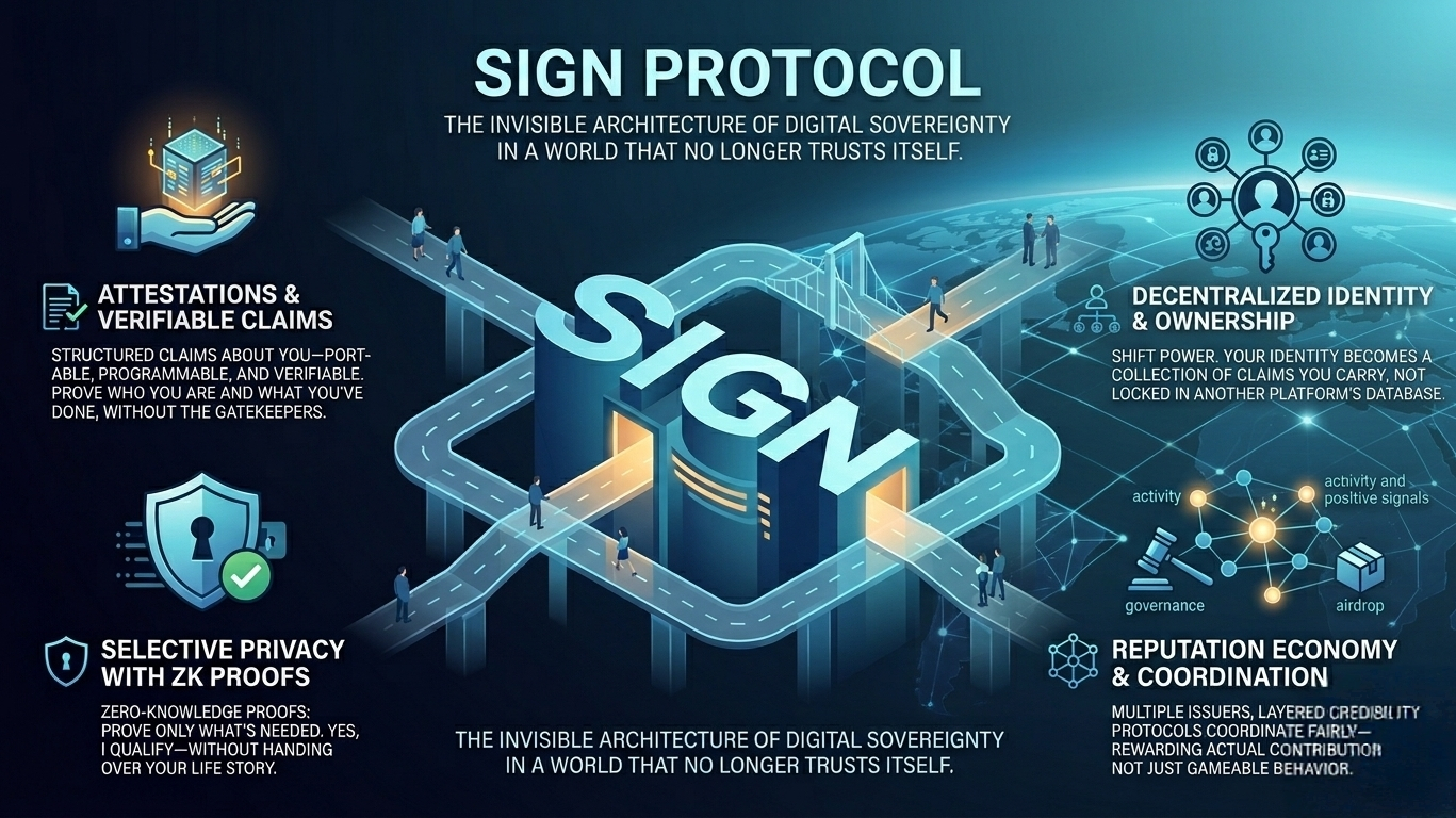 Not in a sci fi way More like a system of recognition In the real world you have passports licenses certificates basically proofs backed by authority SIGN takes that idea and strips it down to infrastructure Anyone can issue credentials but everyone plays by the same verification rules