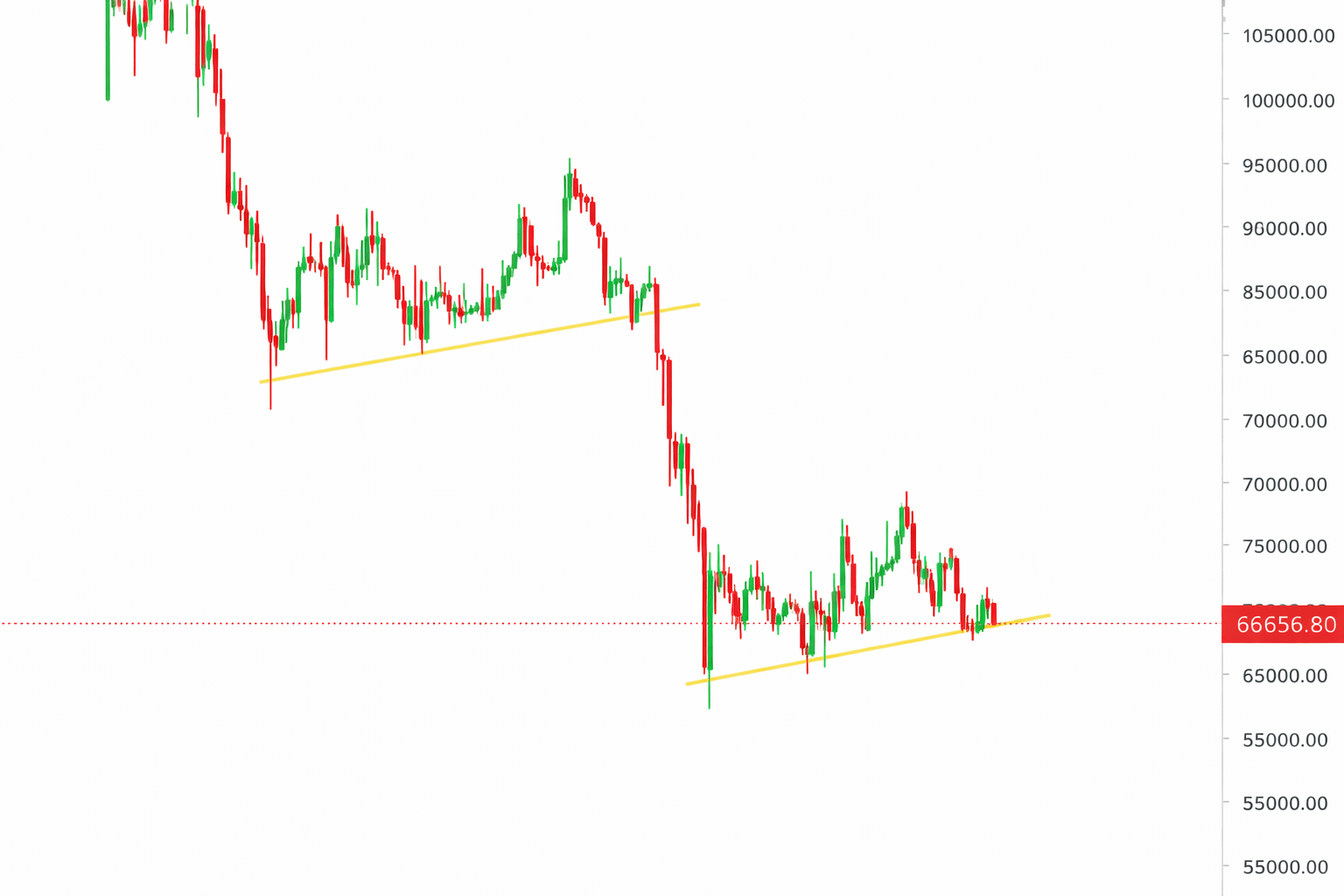 Đây là tín hiệu tích cực trong bối cảnh thị trường vẫn còn nằm trong mô hình nêm giảm, một dạng vận động thường xuất hiện trước khi giá tạo ra cú thoát khỏi trạng thái nén kéo dài.