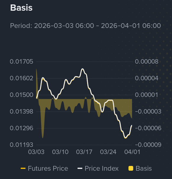Graficul de bază arată că prețul futures a fost tranzacționat aproape de prețul indexului sau ușor sub acesta.