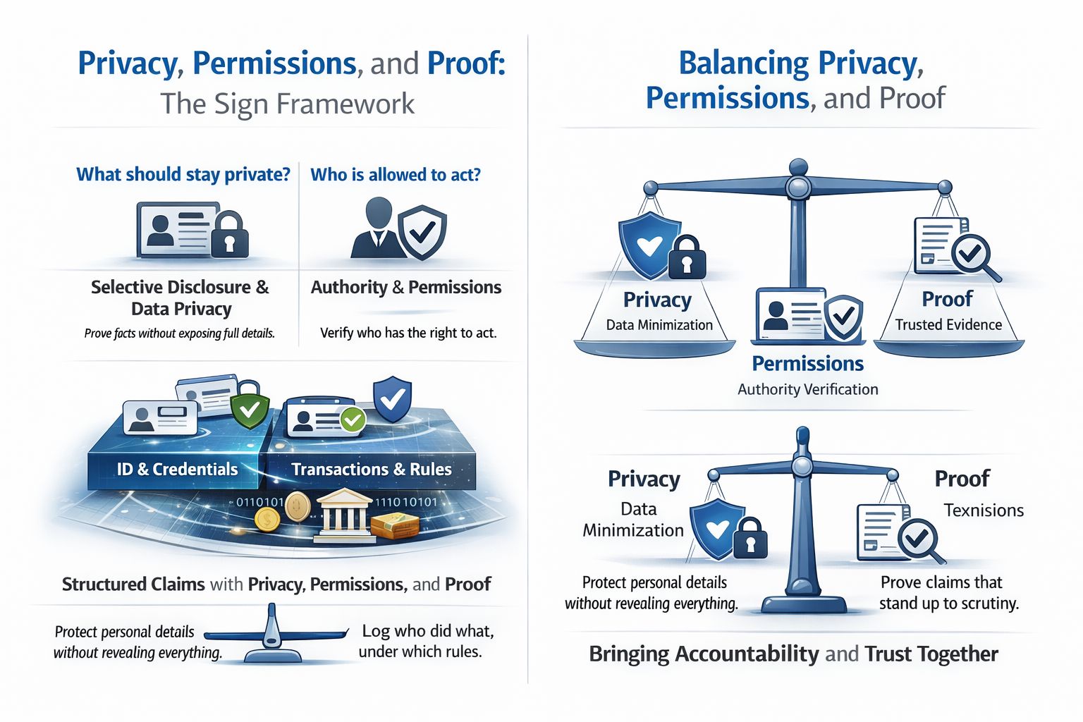 I still think the hard part is governance rather than math because a framework can make it possible to prove only what is necessary but someone still has to decide what is necessary. A system can log permissions cleanly but someone still defines the roles. A proof can be valid while the surrounding policy is still unfair or overreaching. That uncertainty does not make the model useless. To me it makes the model honest. The Sign framework is most persuasive when I stop reading it as a promise to solve trust once and for all and start reading it as a disciplined way to keep privacy permissions and proof from collapsing into one vague word: trust.