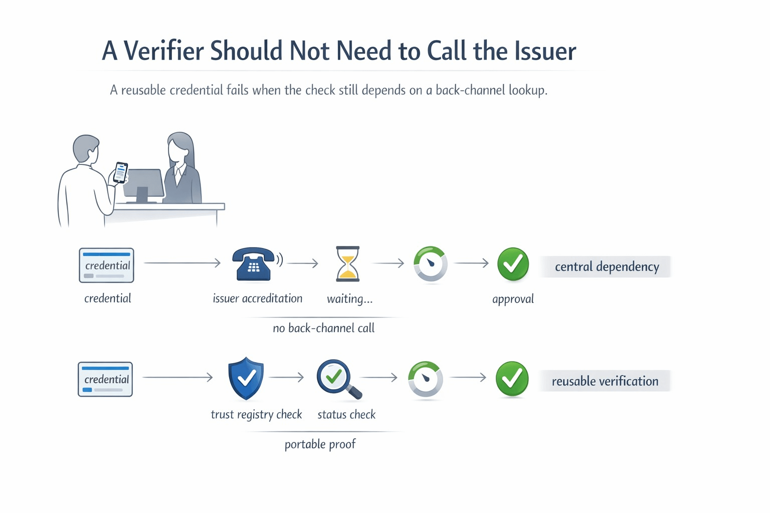 That’s the real problem. The credential may be valid, but the callback still feels more trusted than the proof already in hand. So the holder isn’t actually carrying something independently usable. They’re carrying a reason for somebody else to go ask again.