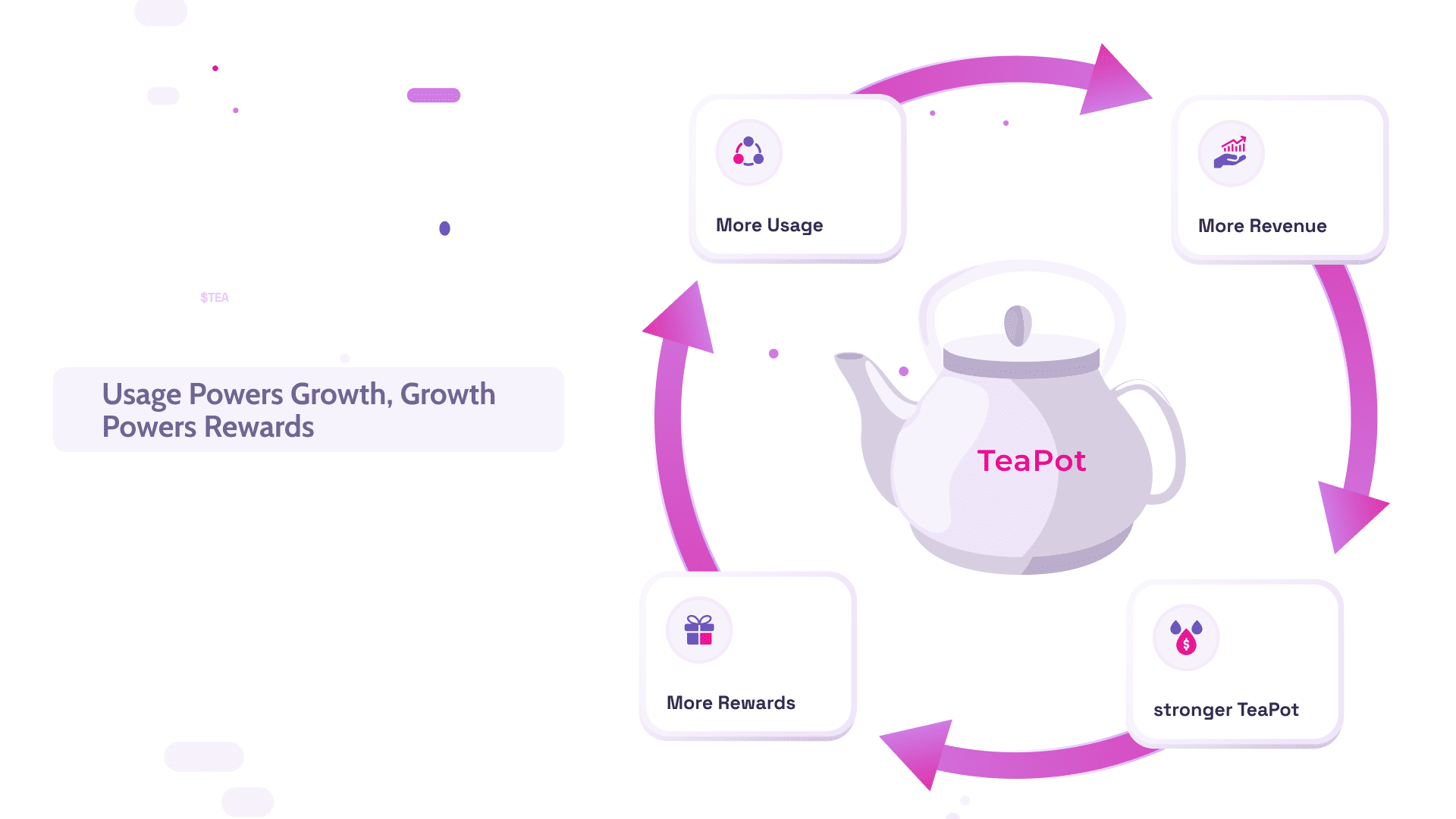 The Virtuous Cycle: Increased ecosystem usage leads to higher revenue, which strengthens the TeaPOT’s principal, resulting in larger rewards and further adoption.