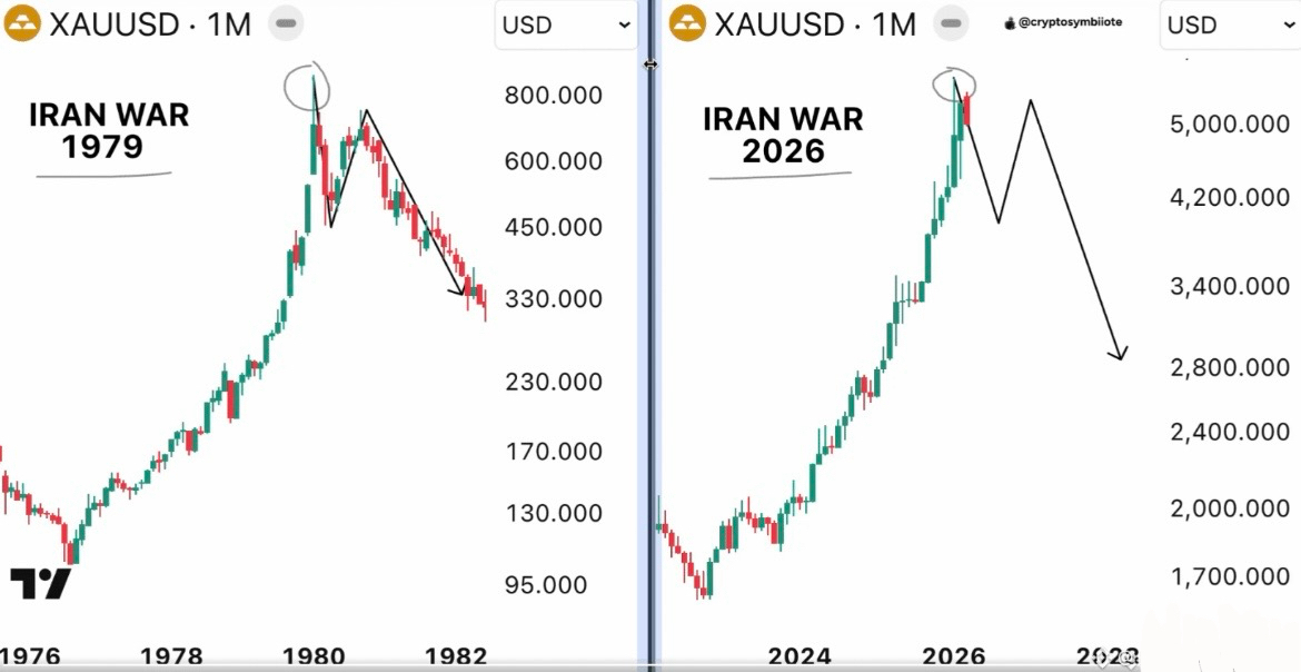 Înapoi în 1979, criza din Iran a declanșat un șoc global al petrolului. Aurul a crescut de la aproximativ 200 $ la 850 $ pe măsură ce frica a dominat piețele și investitorii s-au grăbit să investească în active de refugiu sigur. Părea că a început o nouă eră de aur.