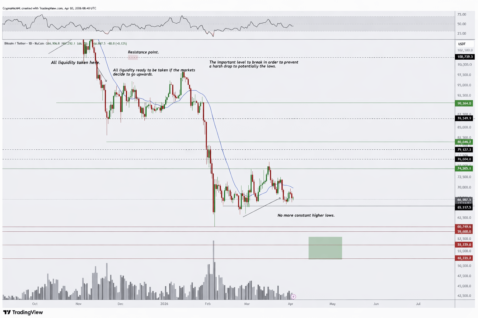 Với mình, mốc cần chú ý lúc này là 71.000 USD. Nếu giá có thể vượt qua khu vực đó một cách dứt khoát, thị trường sẽ có cơ hội thoát khỏi trạng thái lưỡng lự hiện tại và mở ra một nhịp đi lên sáng sủa hơn.