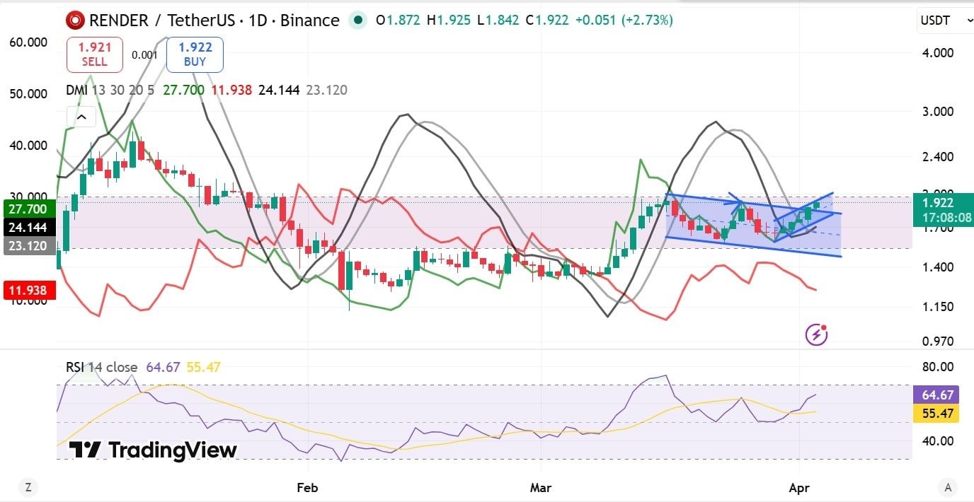 RENDER 日涨 11%,创三周新高 1.92 美元