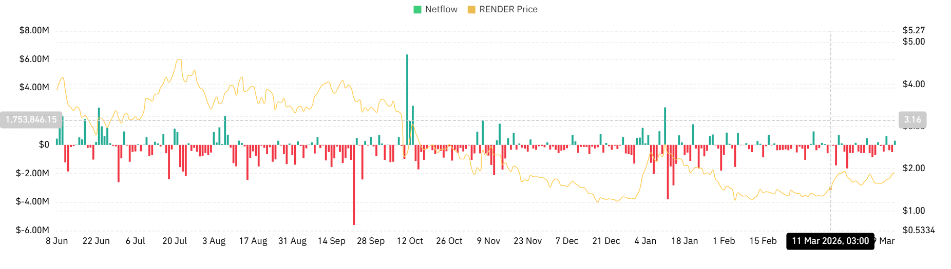 自守住 1.6 美元支撑位以来,RENDER 已连续一周维持上涨趋势,买家持续入场,捍卫了更高价格水平。短期来看,市场需求仍然活跃,支撑了这波上涨。