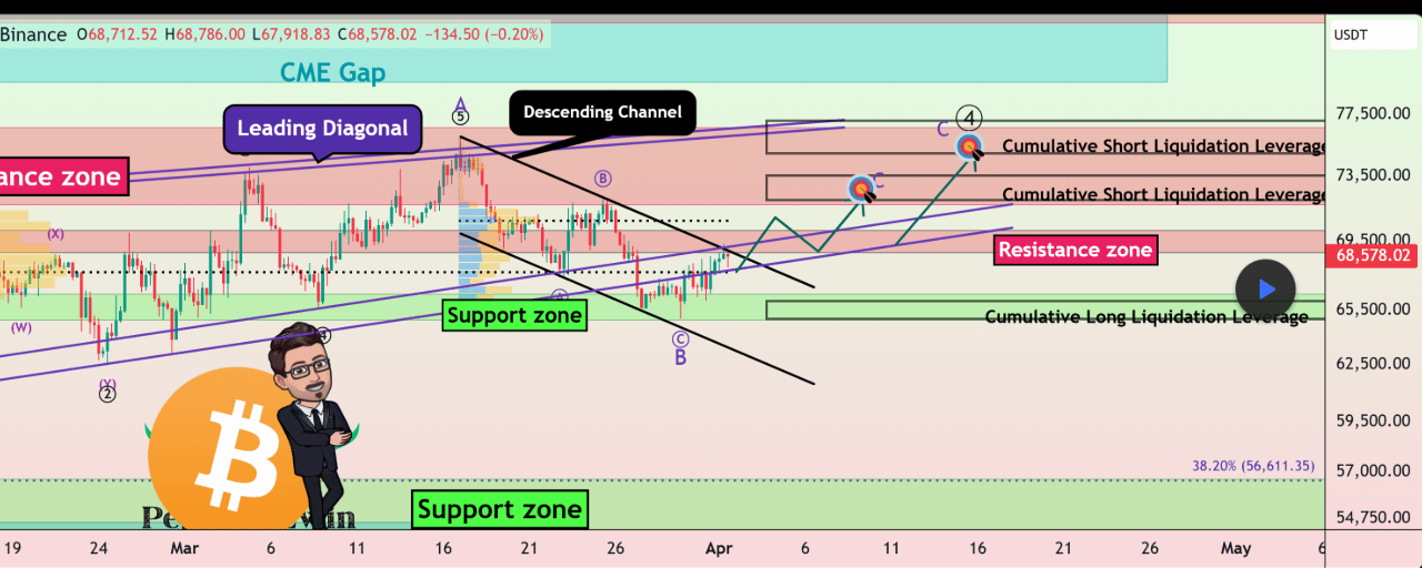 Bullish scenario: If BTC can break and hold above 69.5k, then targets can go up to 73.5k and 75k+.