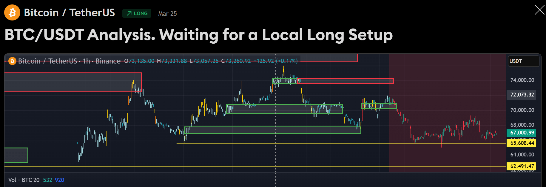 Spargere peste → zona $70K–$72K