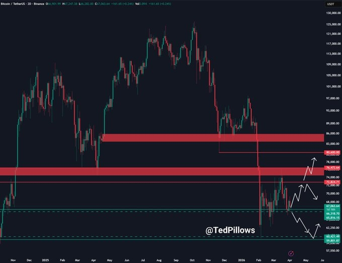 Următoarele 24 de ore vor fi un câmp de bătălie. Cu datele despre locurile de muncă din SUA pe cale de a fi publicate, un dolar puternic ar putea fi cuiul final în atacul acestui rally, sau revenirea peste 68.000 USD ar putea să ne lase să respirăm din nou. Bitcoin înregistrează maxime din ce în ce mai scăzute de când a atins 76.000 USD, iar asta, familie, este un semnal că vânzătorii încă au controlul. 🍳