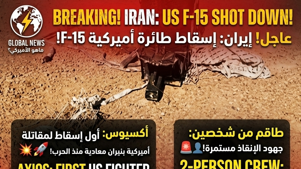 تطور عسكري غير مسبوق في المنطقة. وكالة أكسيوس ومصادر إيرانية تؤكد إسقاط طائرة مقاتلة أمريكية من نوع F-15 بنيران إيرانية. الصور والفيديوهات التي نشرتها وسائل إعلام إيرانية تظهر أجزاء من الطائرة المدمرة ومقعد القذف في الصحراء.