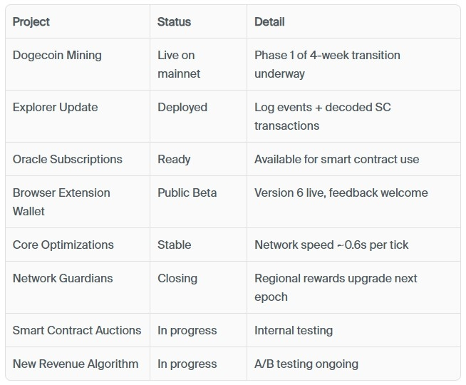 Privind înainte, echipa științifică plănuiește să coordoneze propuneri pentru desfășurarea sarcinilor de antrenament AI Neuraxon direct pe puterea de calcul a rețelei Qubic odată ce lățimea de bandă pentru dezvoltatori se va deschide după lansarea DOGE.