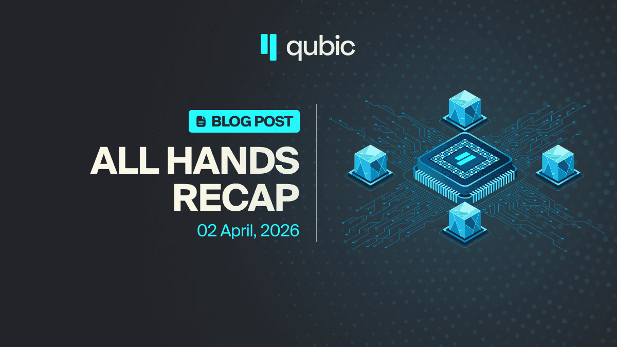 All-Hands de pe 2 aprilie 2026 a avut loc la aproximativ douăzeci și patru de ore după ce mineritul Dogecoin a fost activat pe rețeaua Qubic. Acea sincronizare a stabilit tonul pentru următoarea sezon pe care Qubic o intră. Fiecare departament a avut un teren nou de acoperit. Iată ce s-a mișcat, de ce contează și ce urmează.