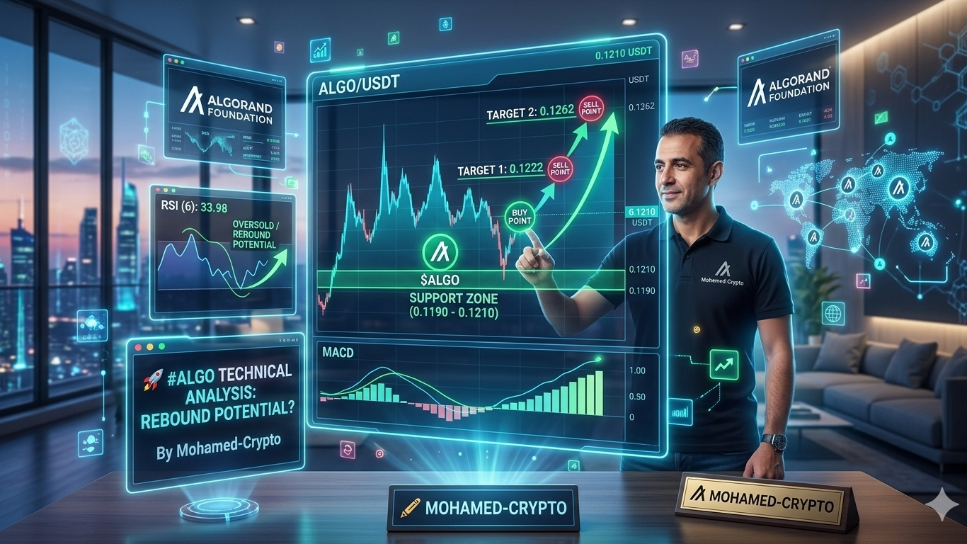 تشهد عملة #ALGO في الوقت الراهن تحركات سعرية لافتة للنظر، حيث تظهر البيانات الفنية لزوج #ALGO/USDT↘️🟥 محاولات جادة للتماسك وبناء قاعدة سعرية صلبة بعد موجة التصحيح الأخيرة. وبإلقاء نظرة فاحصة على الشارت، نجد أن السعر يتداول حالياً عند مستويات 0.1210 USDT محققاً ارتفاعاً يومياً يقارب 2.98%، وهو ما يعكس دخول سيولة شرائية تدريجية. وتعتبر منطقة الدعم الممتدة ما بين 0.1190 و 0.1210 USDT منطقة تجميعية استراتيجية، خاصة وأن السعر أظهر ارتداداً واضحاً من قاع 0.1196 USDT الذي يمثل نقطة ارتكاز قوية للمشترين.