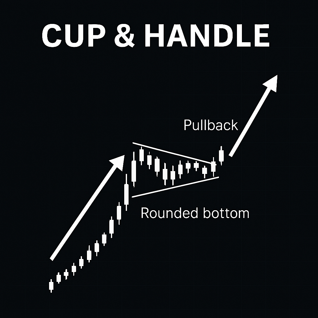 The Cup & Handle is a bullish continuation pattern that signals trend strength and accumulation before continuation.