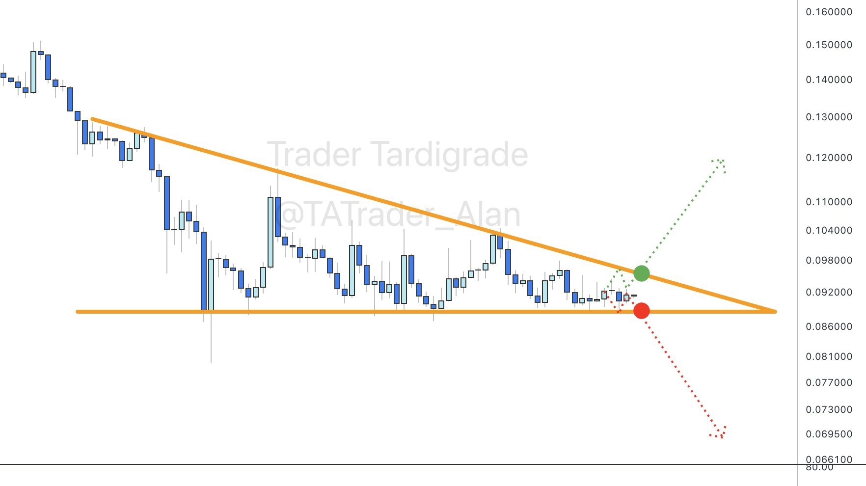 Punto Verde: Si rompemos el techo de los $0.098, prepárate para un despegue hacia los $0.12. 🚀