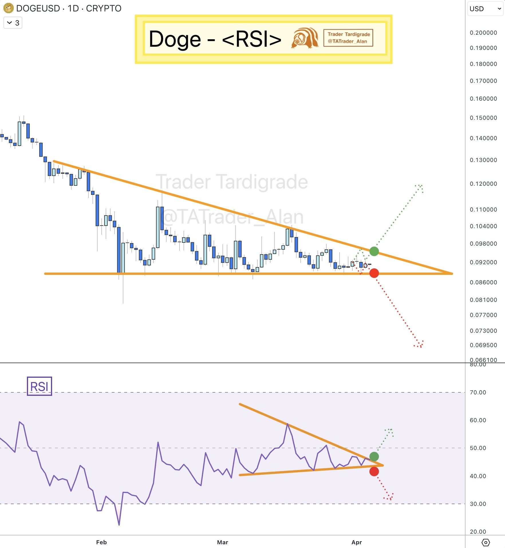 RSI: El indicador de abajo está igual de apretado, lo que confirma que el mercado está a punto de explotar hacia algún lado. 🎢