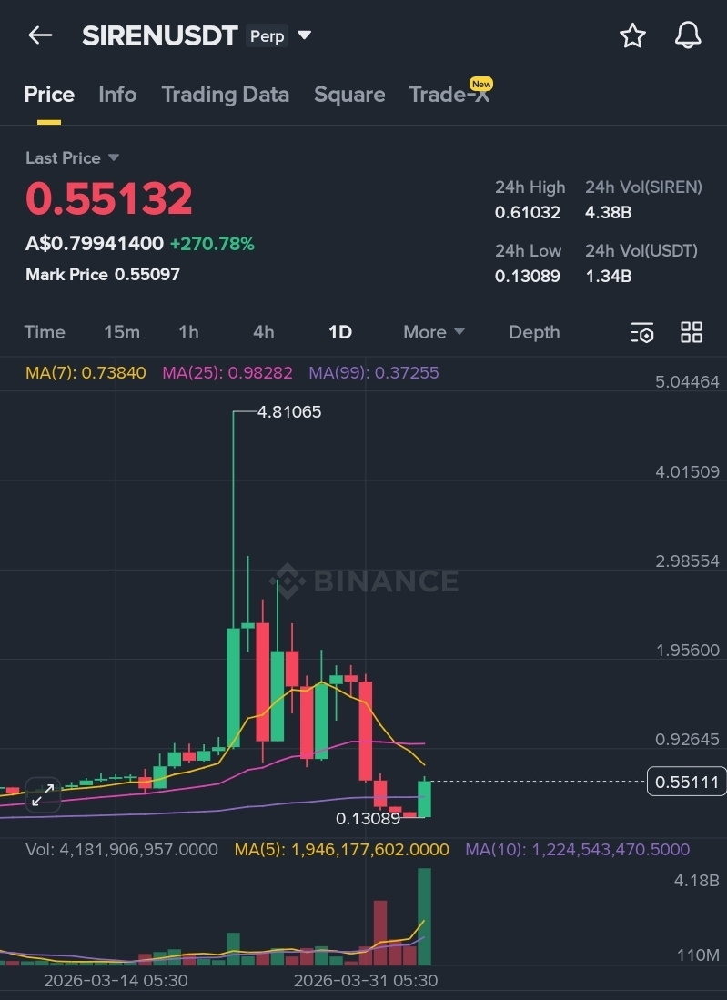 This week alone, $SIREN had a 24-hour range between $0.26 and $1.74. That is a 569% spread.
