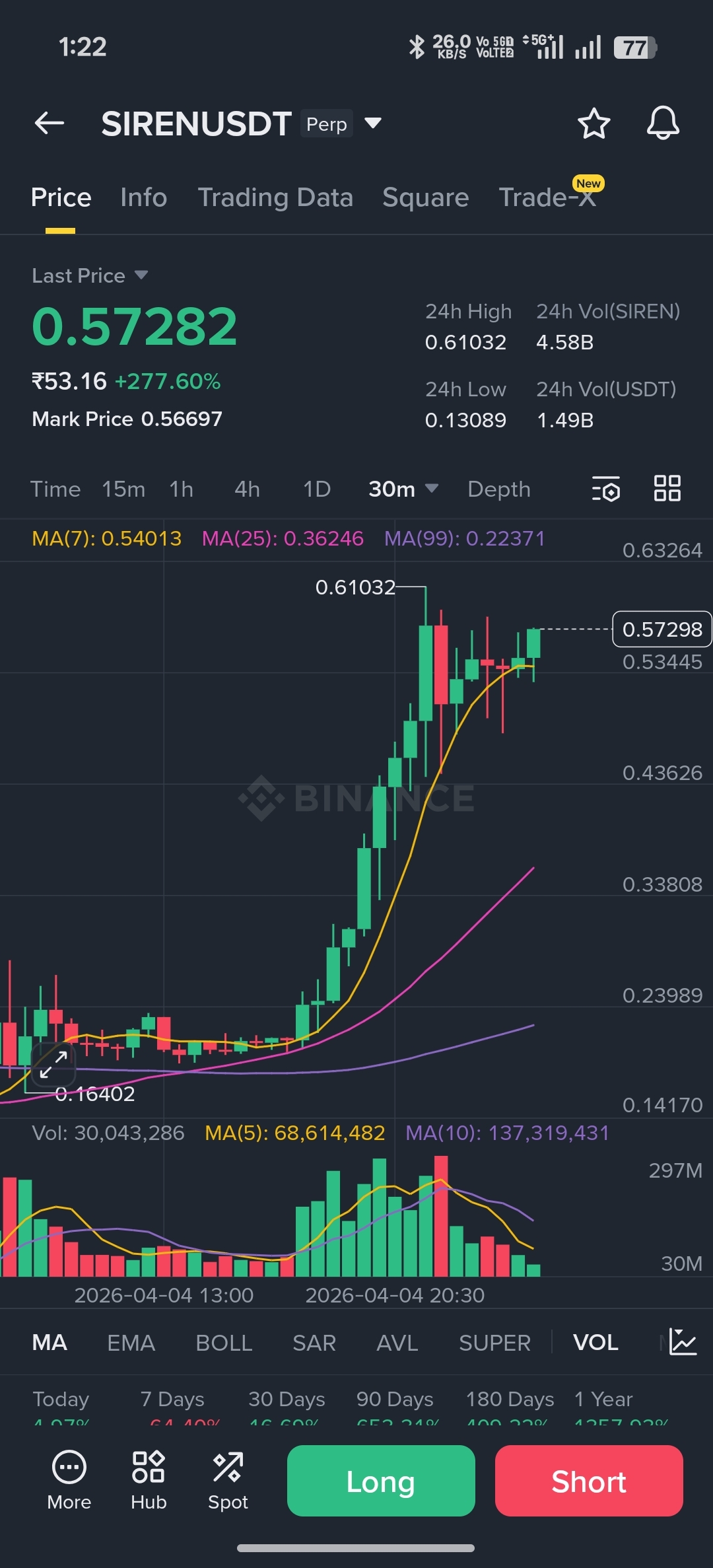 Să vedem faptele pentru SIREN/USDT astăzi: