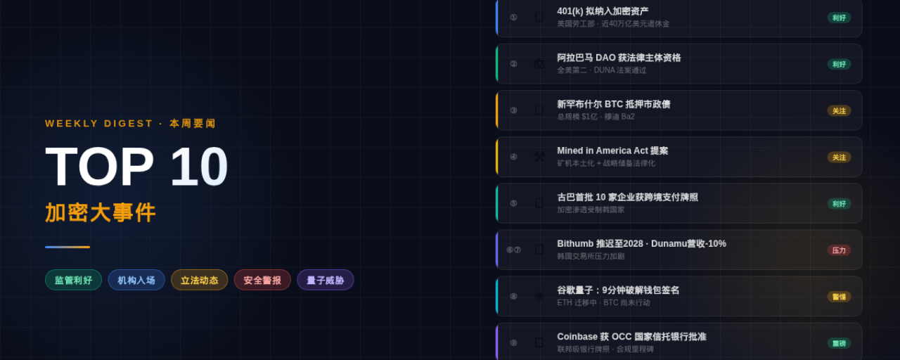 Știrile din sfera reglementării sunt favorabile - 401(k), legislația DAO, licența bancară Coinbase, legalizarea rezervelor strategice, SUA se organizează sistematic pentru a integra activele criptografice în cadrul financiar tradițional.