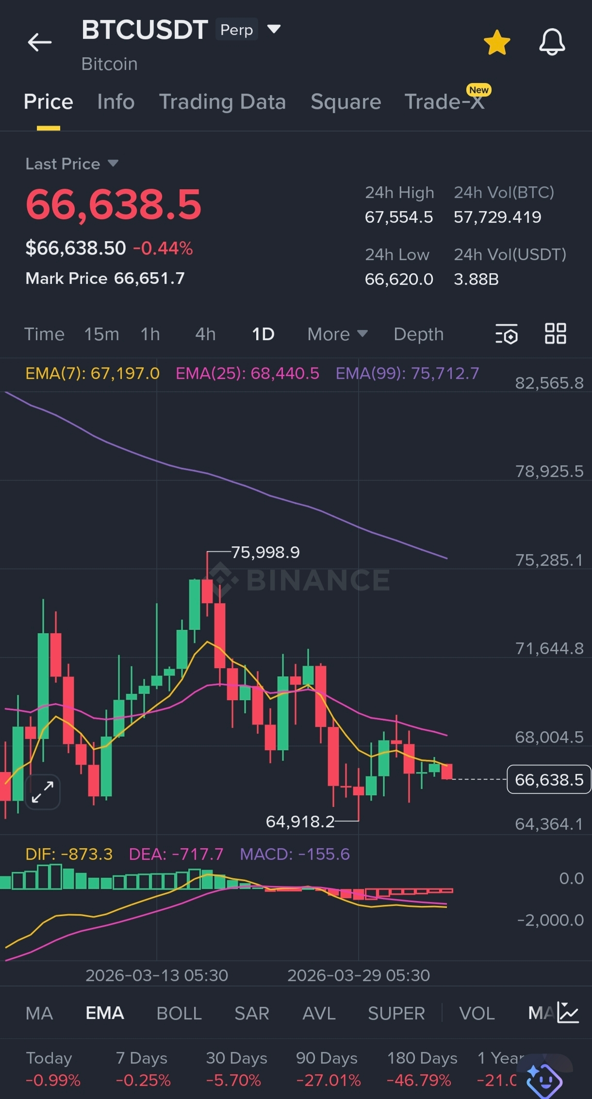Current Price: 66,638.5 USDT 📉