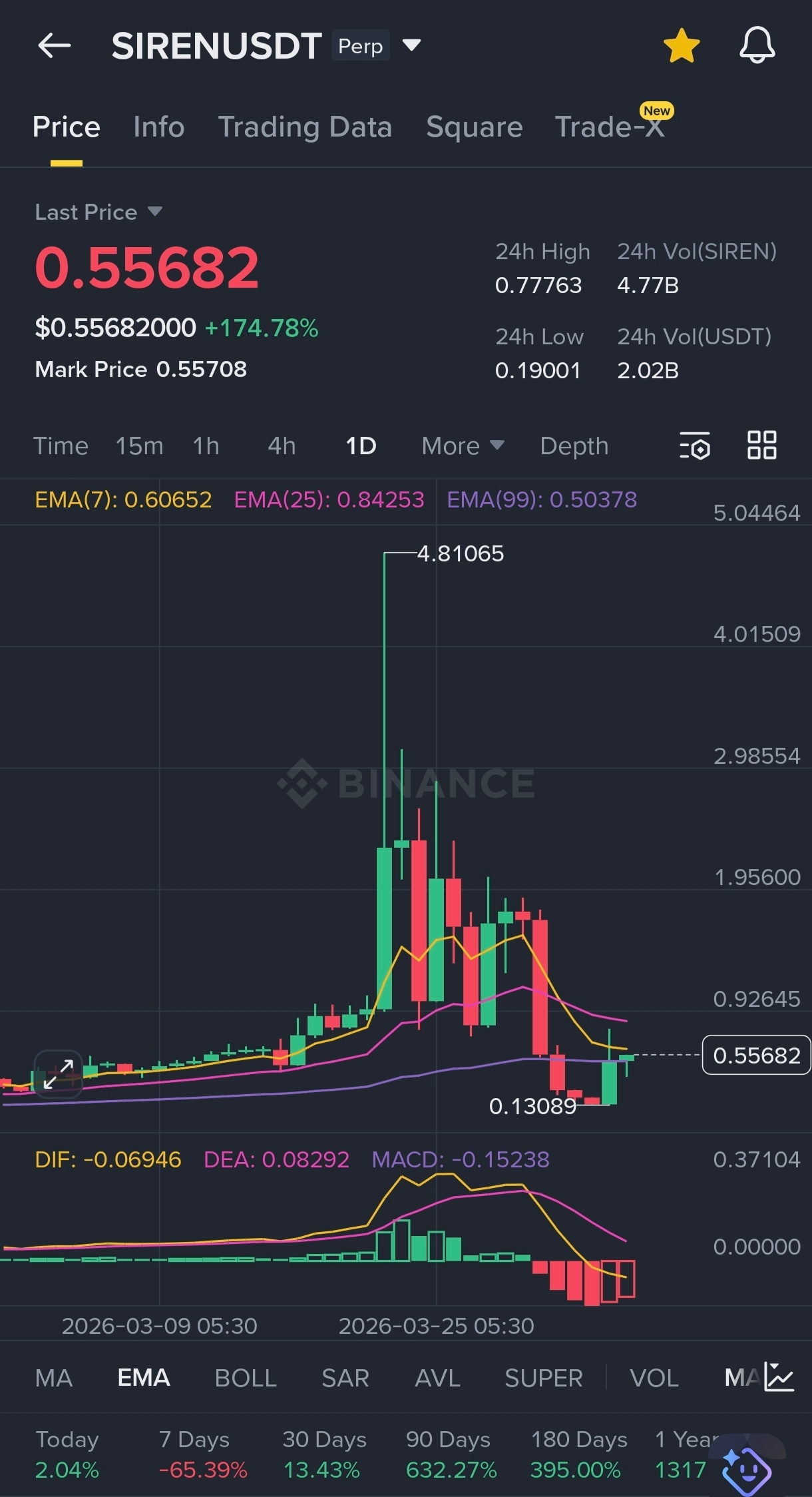 24h Change: +174.78% (wild move!)