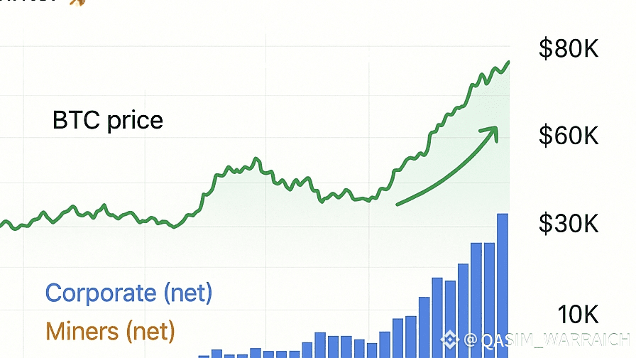 De la sfârșitul anului 2024, companiile corporative au cumpărat Bitcoin ($BTC) într-o cantitate record - mult mai mult decât capacitatea de producție a minerilor. Această diferență uriașă creează o adevărată penurie de aprovizionare pe piață, ceea ce duce la o creștere rapidă a prețurilor$BTC .