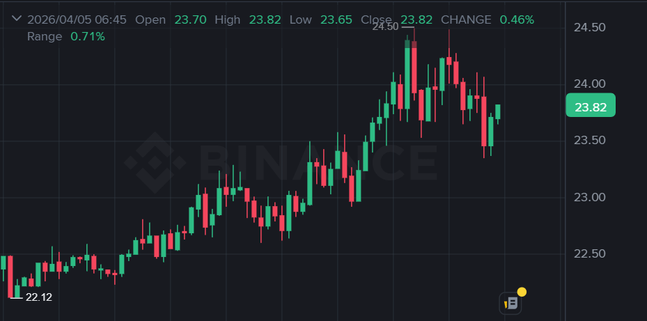 Consolidation: The price is currently in a consolidation phase, trading narrowly between $21.20 and $21.65.