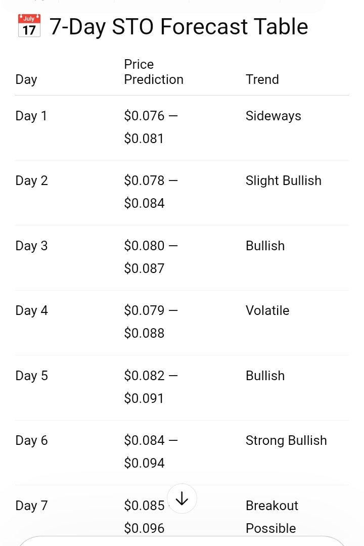 Moneda STO pare optimistă pentru următoarele 7 zile, cu un potențial de creștere de 10%-20% dacă momentumul continuă.