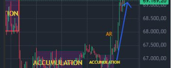 $BTC Sau pha tích lũy vùng ~65k - 67k, giá đã break mạnh lên 69k,