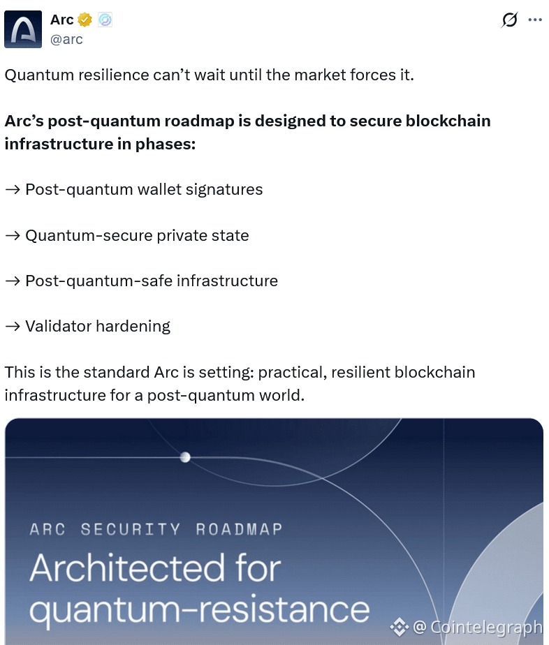 Circle said a post-quantum signature scheme will be implemented on Arc when it launches on mainnet — expected sometime in 2026 — enabling quantum-resistant wallets.