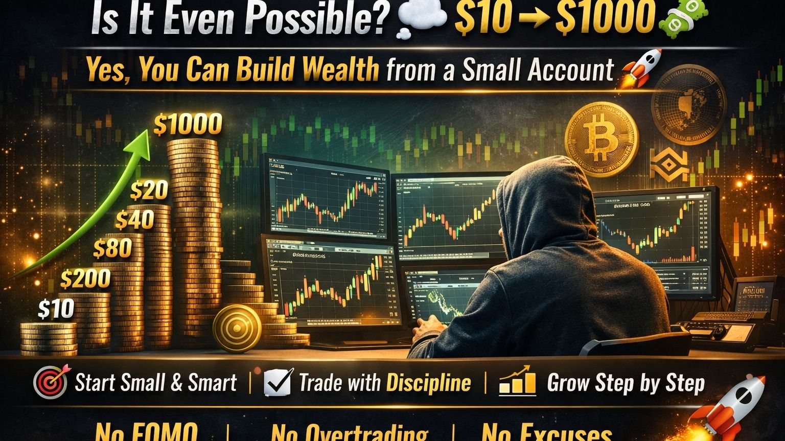 Most people enter trading thinking they need thousands of dollars to make it big.That’s the first mistake.Markets don’t care about your account size — they care about your discipline.Turning $10 into $1000 isn’t a fantasy. But it’s also not for the impatient.