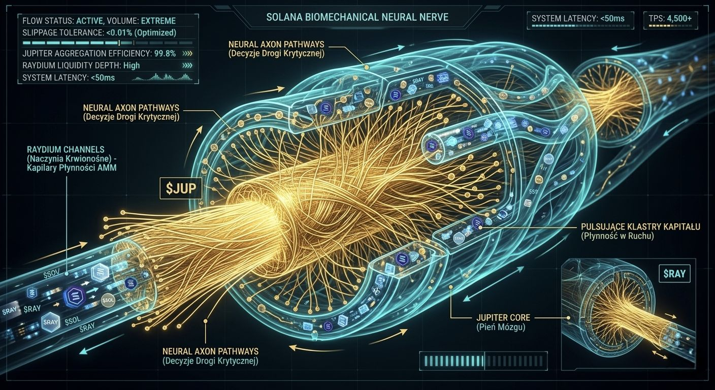 W zeszłym tygodniu pisałem o biomiechanicznym ciele Solany ($SOL ). Po ustaleniu rytmu przez Płat Czołowy (L1), pałeczkę przejmuje Układ Nerwowy. To tutaj czysta energia elektryczna zamieniana jest w ruch, handel i realną wartość.