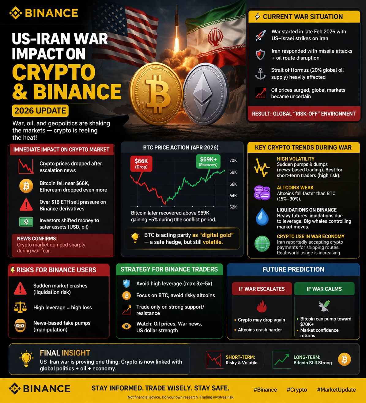 Războiul în curs din 2026 din Iran a creat o volatilitate puternică pe piețele financiare globale, inclusiv criptomonedele. Pe măsură ce tensiunile cresc, investitorii reacționează rapid, făcând piețele cripto extrem de instabile.⚡