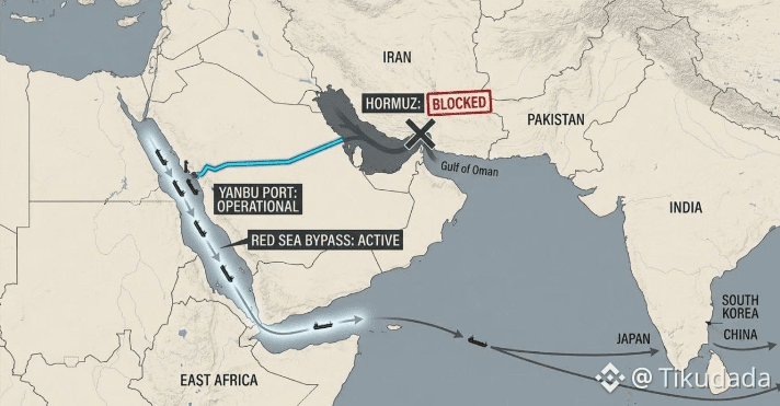 Saudi bypassed the Strait of Hormuz entirely. Their East-West pipeline now carries 7,000,000 barrels per day to the Red Sea.