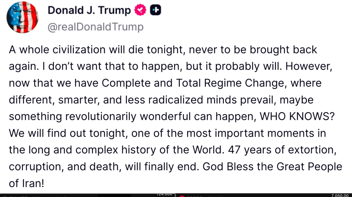 Dacă ceea ce scrie Trump despre „seara aceasta” se întâmplă cu adevărat (fie că este colapsul final al regimului sau un atac masiv)