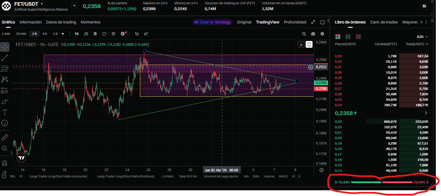 Precio: ≈$0.2358 (lateral, sin romper 0.25)