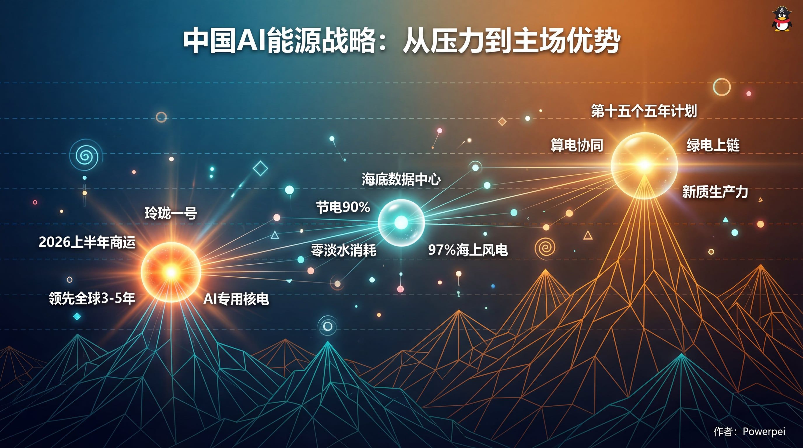 简单说:别人在担心电不够用,中国在布局怎么把电变成AI主权的壁垒