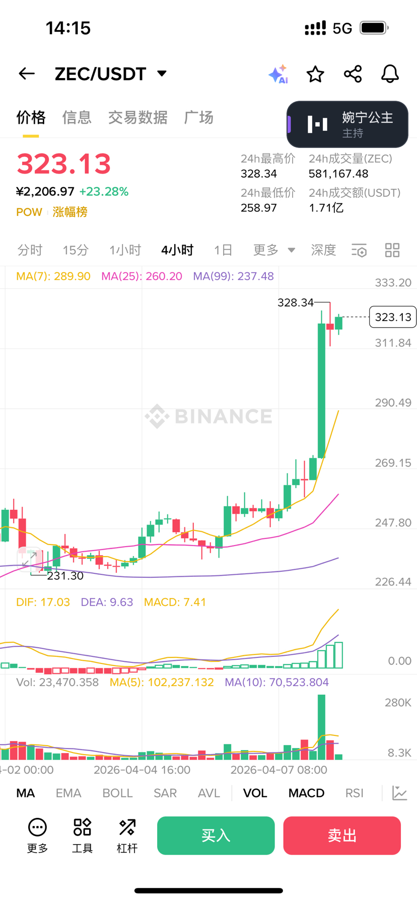 Tocmai am văzut că prețul a sărit direct la 323 de dolari, crescând cu peste 23% în ultimele 24 de ore. Acum două zile i-am spus unui prieten să nu vândă, iar astăzi mi-a trimis un mesaj spunând „Chiar ai avut dreptate.”