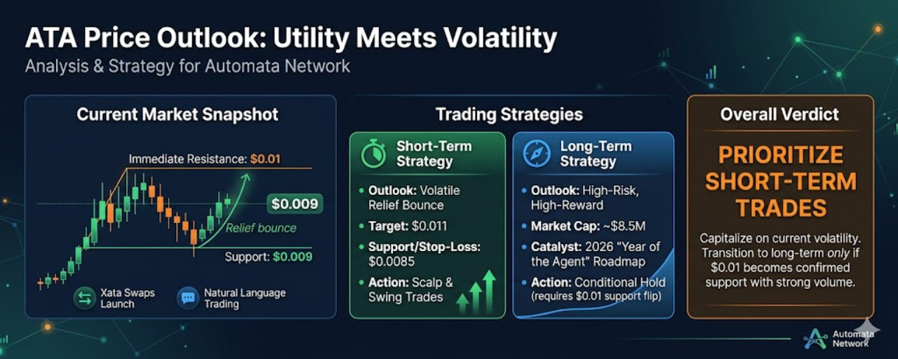 Long-Term: With a small market cap of approximately $8.5M, ATA is a high-risk, high-reward play on the 2026 "Year of the Agent" roadmap. Growth toward $0.015+ depends entirely on the adoption of its TEE (Trusted Execution Environment) technology.