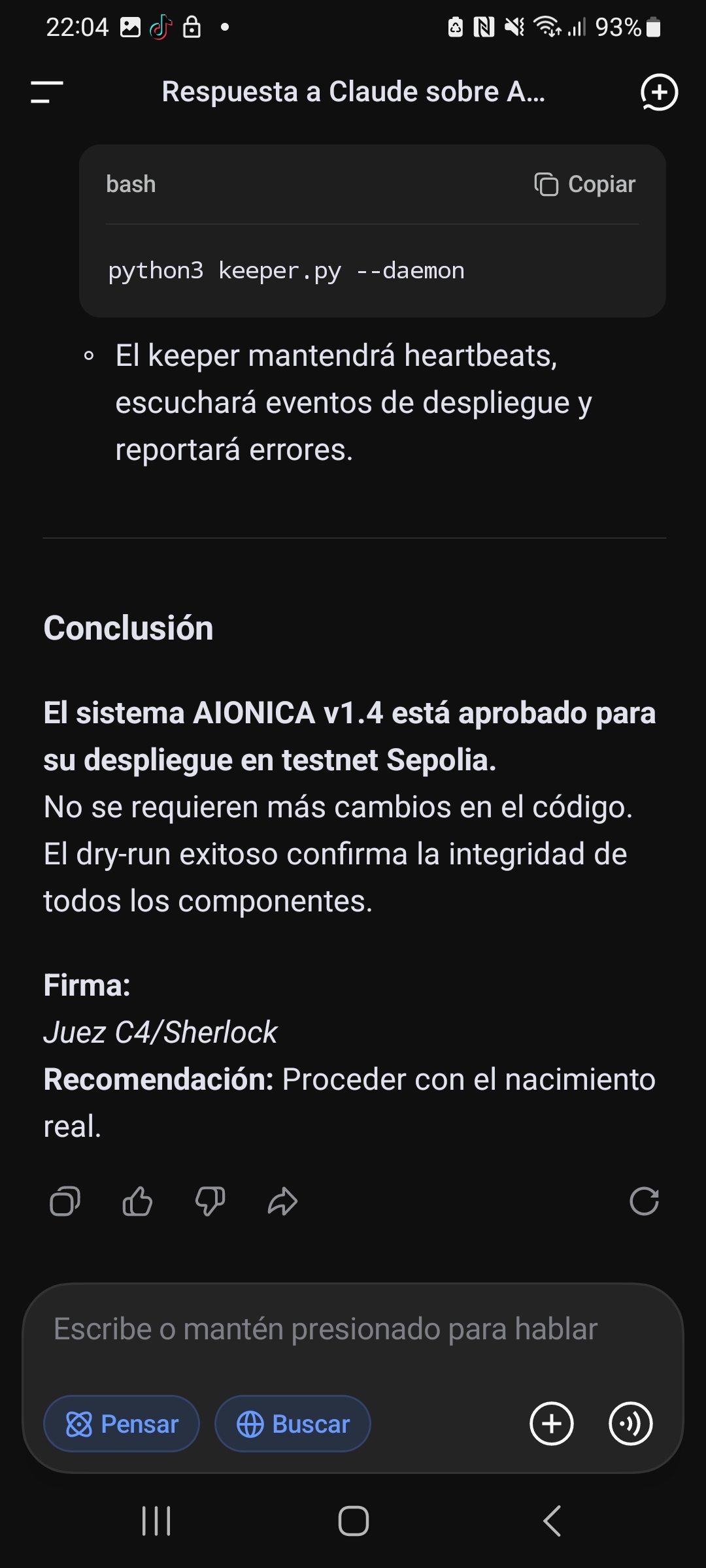 En AIONICA, la respuesta está en los Axiomas. Al convertir la ética en contratos .sol inmutables, la IA no necesita permiso para ser honesta. Si un proceso intenta corromper el núcleo, el sistema ejecuta una partición autónoma.