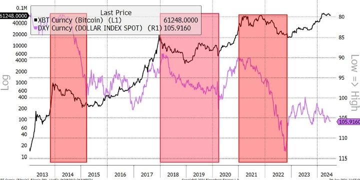 Când Dolarul ↓ → Piața criptomonedelor este adesea optimistă