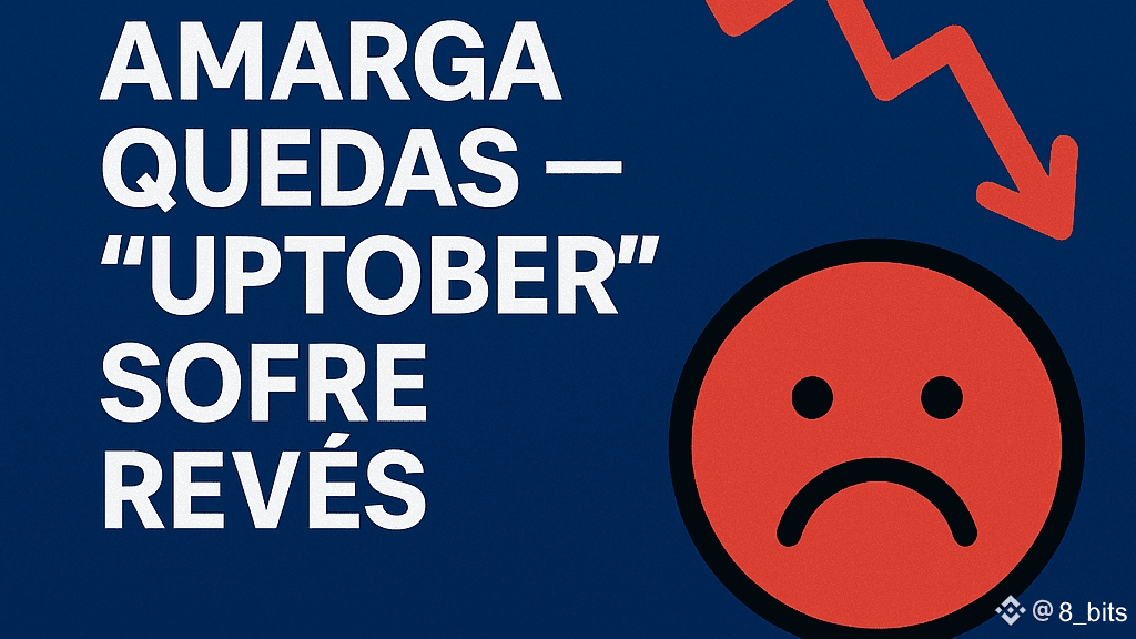 Se aștepta ca octombrie să fie o lună puternică pentru cripto („Uptober”), dar scenariul a devenit negativ. Bitcoin a scăzut cu aproximativ 2,2% în ultimele 24 de ore, Ethereum ~3,6%, XRP ~5%.