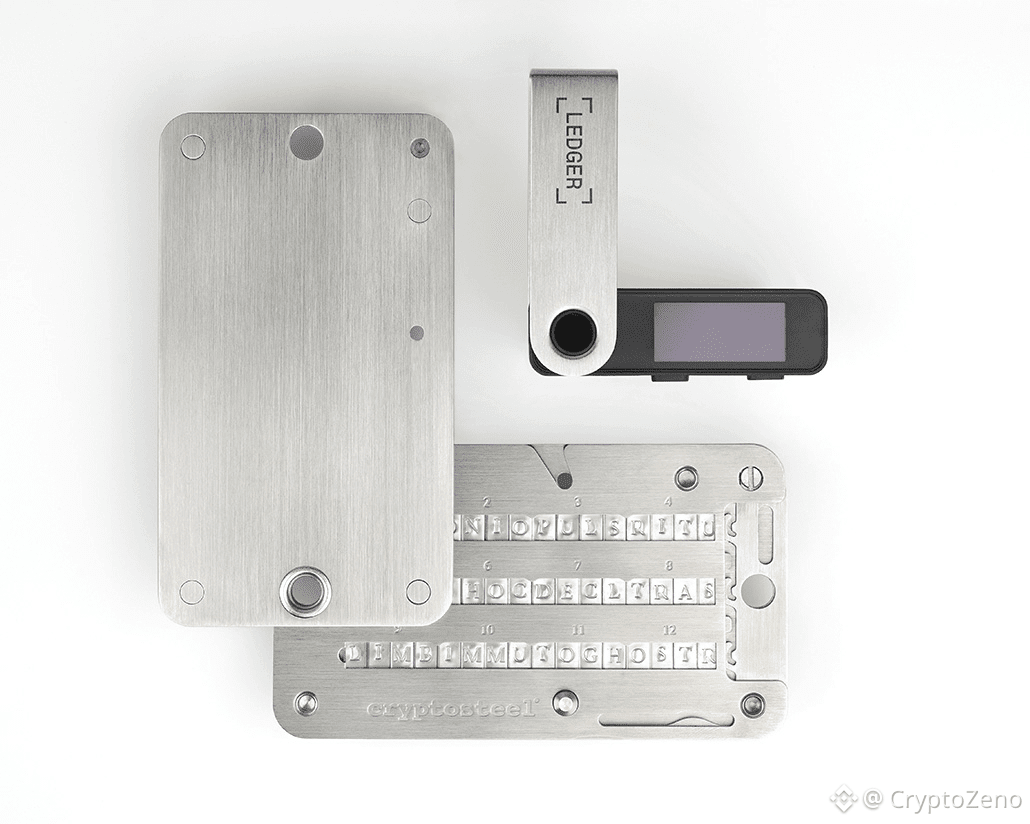 Portofelele de browser singure nu sunt suficiente pentru capital semnificativ. Portofelele hardware, cum ar fi Ledger, Trezor, Keystone sau dispozitivele izolate, reduc dramatic suprafețele de atac la distanță. Stocarea rece nu este despre comoditate. Este despre eliminarea întregilor categorii de risc.