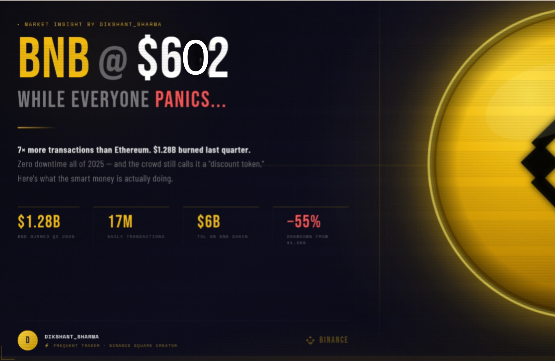 Paying attention to BNB at $602 — while everyone else is screaming "bear market" — feels exactly like those moments.