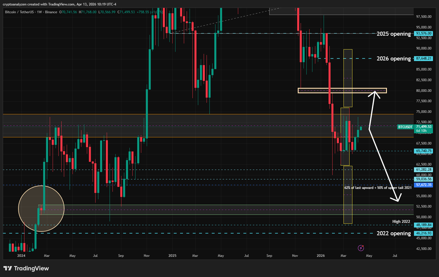 $BTC Bitcoin remains rangebound on the weekly timeframe, with price only testing the upper boundary of the annual gap — without any confirmed breakout.
