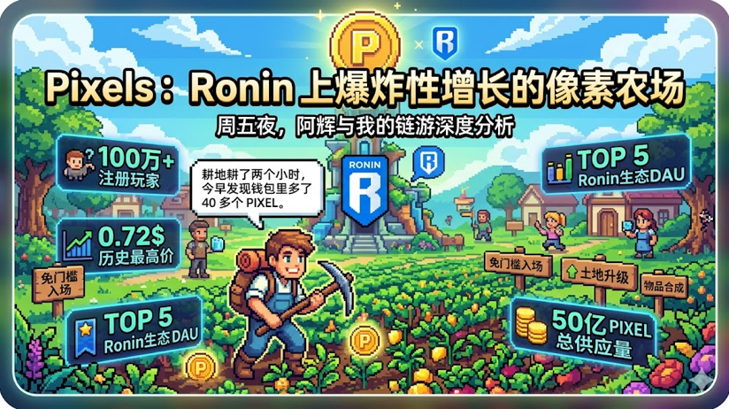 我当时的第一反应是这不就是以前的农场游戏换了个链上皮肤?但当他截图给我看他的土地 NFT、作物收成与链上交易记录时,我意识到这不是普通的 Play-to-Earn,这是一个正在重新定义链游的项目,于是我开始认真研究 PIXELS