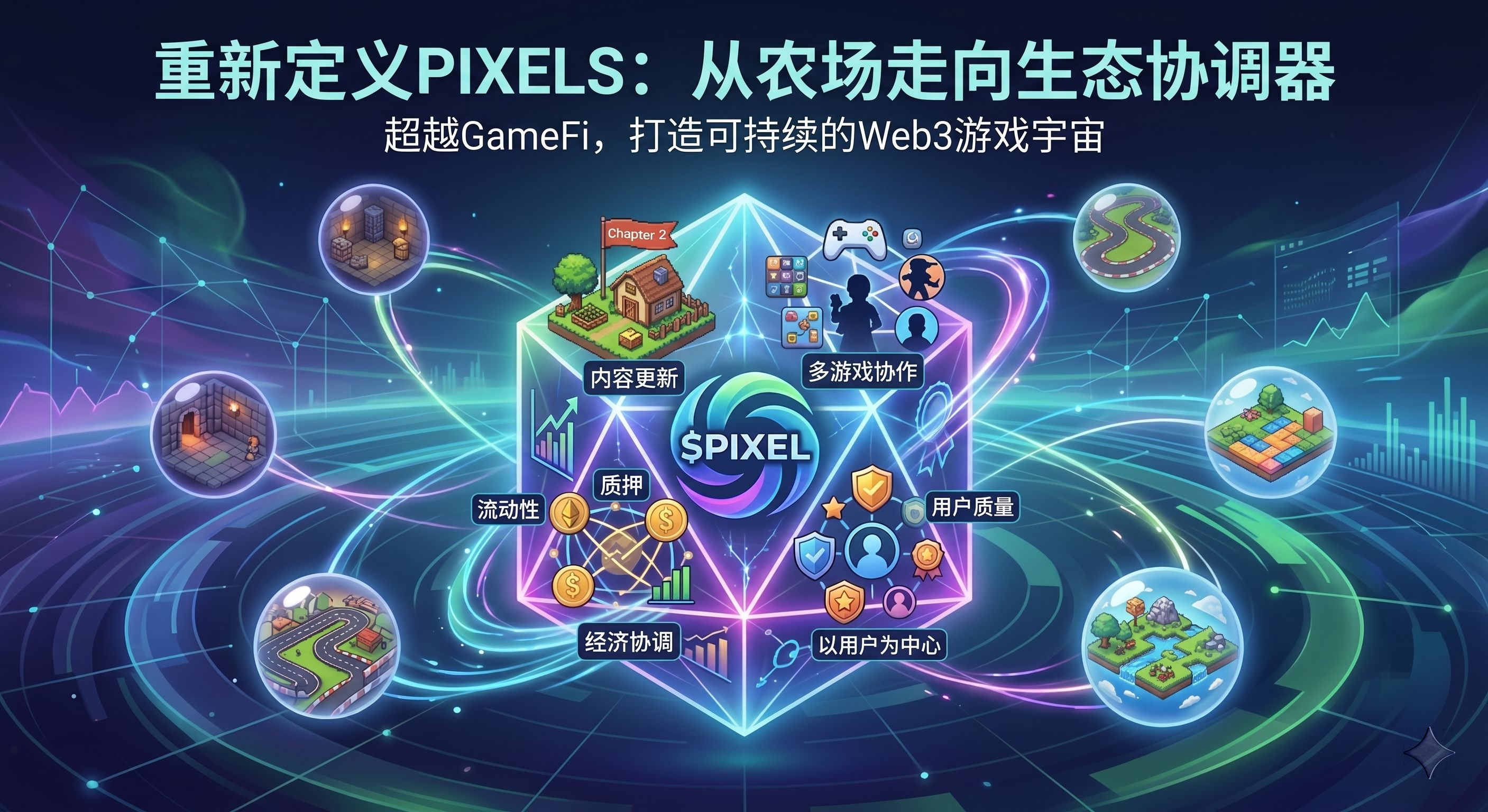 所以我现在看 @Pixels ,不会只盯着短线走势,也不会只看这轮活动能不能把热度再推高一点。我更关注四个东西:第一,Chapter 2 后面的内容更新能不能继续接上;第二,staking 会不会持续引入新的生态游戏;第三,Reputation 这套机制能不能真的把用户质量和经济收益拉开差距;第四,$PIXEL 能更多留在生态内部循环,而不是只在交易所里来回博弈。前两个决定内容天花板,后两个决定代币质量,这四件事只要有两三件持续兑现,Pixels 这条线就还没走完。