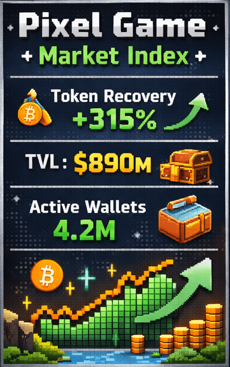 O categorie mică și rezistentă de jocuri $PIXEL jocuri Web3 construite pe tokenomics eficiente și orientate spre utilitate nu au supraviețuit doar pieței bearish. Ele s-au reconstruit în liniște, și-au rafinat modelele și acum depășesc aproape toate celelalte sectoare GameFi pe măsură ce ne îndreptăm spre 2026. Recuperarea medie a tokenurilor de joc pixel este de peste 300% față de minimele pieței bearish. Valoarea totală blocată în protocoalele DeFi de jocuri pixel a depășit 890 de milioane de dolari. Portofelele active se apropie de 4,2 milioane.