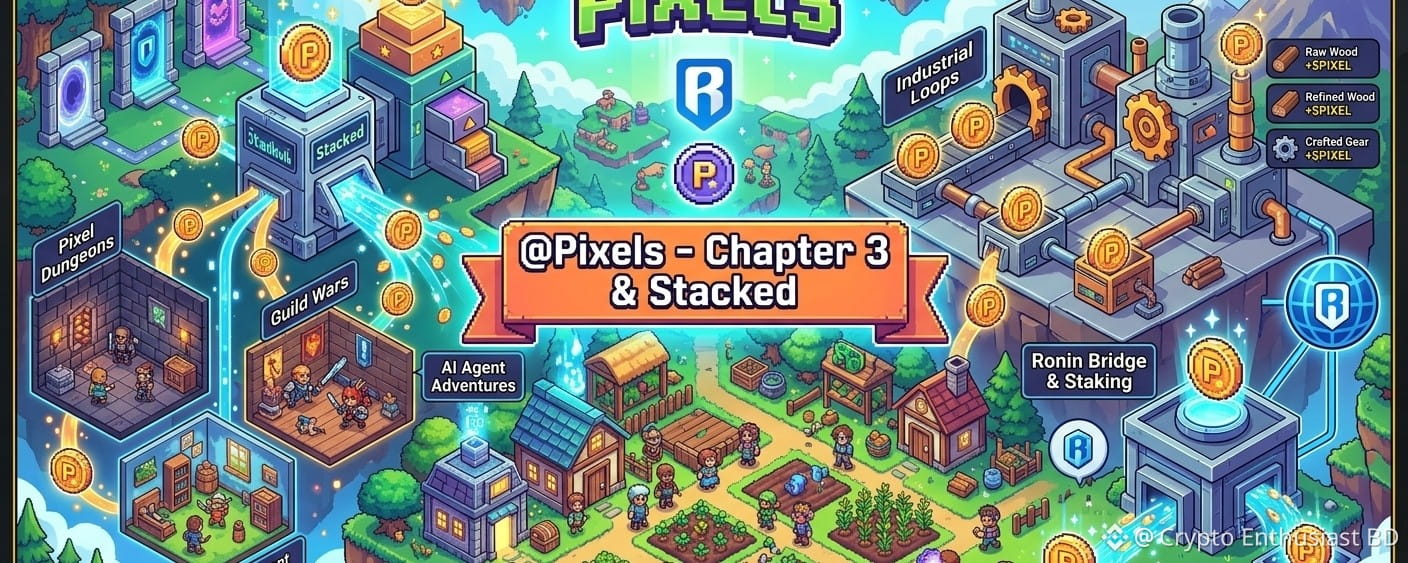 The landscape of Web3 gaming has shifted dramatically in 2026. We are no longer in the era of "click-to-earn" hype; we are in the era of sustainable, complex economic ecosystems. At the forefront of this movement is @Pixels , a project that has successfully transitioned from a cozy social farm into a sophisticated industrial powerhouse through its Chapter 3 expansion and the innovative Stacked infrastructure.