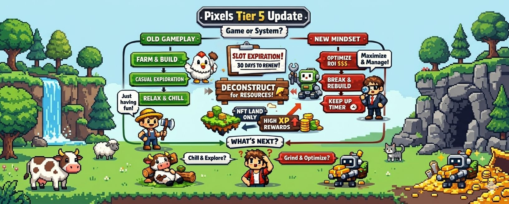 De asemenea... acel lucru cu terenurile NFT pentru industriile T5. asta separă instantaneu jucătorii. Din nou, nu spun că este greșit, dar cu siguranță creează o linie. Nu toată lumea mai joacă aceeași versiune de Pixels.